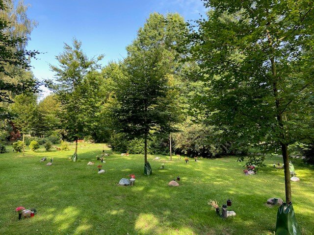 Baumwahlgräber für Urnen befinden sich an einem Baum und können mit einem Steinfindling mit den Maximalmaßen 30 x 30 x 30 cm versehen werden, stehende Steine sind nicht zugelassen. Baumwahlgräber für Urnen können wie Wahlgrabstätten für Urnen mit bis zu vier Urnen belegt werden. An einem Baum können mehrere Wahlgrabstätten vergeben werden. Die biologisch abbaubare Urne wird im Wurzelbereich eines Baumes beigesetzt.