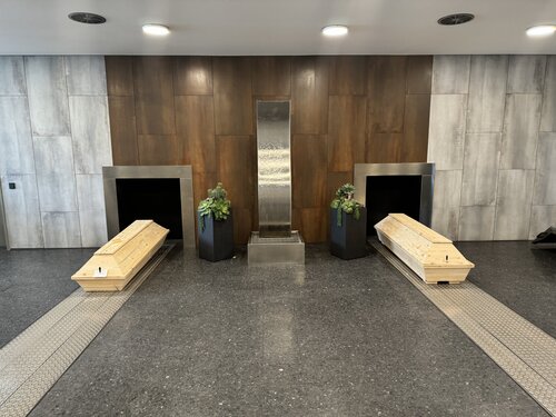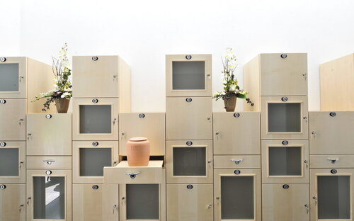 Weiterhin stehen zwei Trauerhallen mit 90 bzw. 120 Sitzplätzen und ein Urnenfeierraum für kleine Trauergemeinden zur Verfügung.